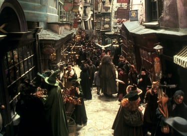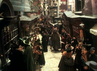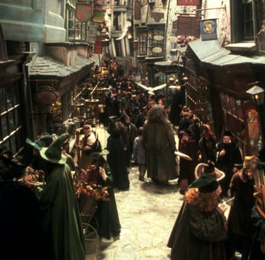 No entanto, a autora J.K. Rowling já declarou que nenhuma rua real serviu de base para as cenas do Beco Diagonal nos filmes.