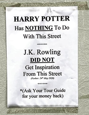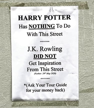 No entanto, a autora J.K. Rowling declarou que nenhuma rua real serviu de base para as cenas dos filmes. O que torna a rua menos um “cenário oficial” e mais um encanto da imaginação coletiva.